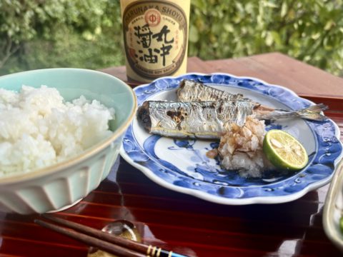 今回のお写真は、旬の秋刀魚と炊き立ての白い新米でございます。